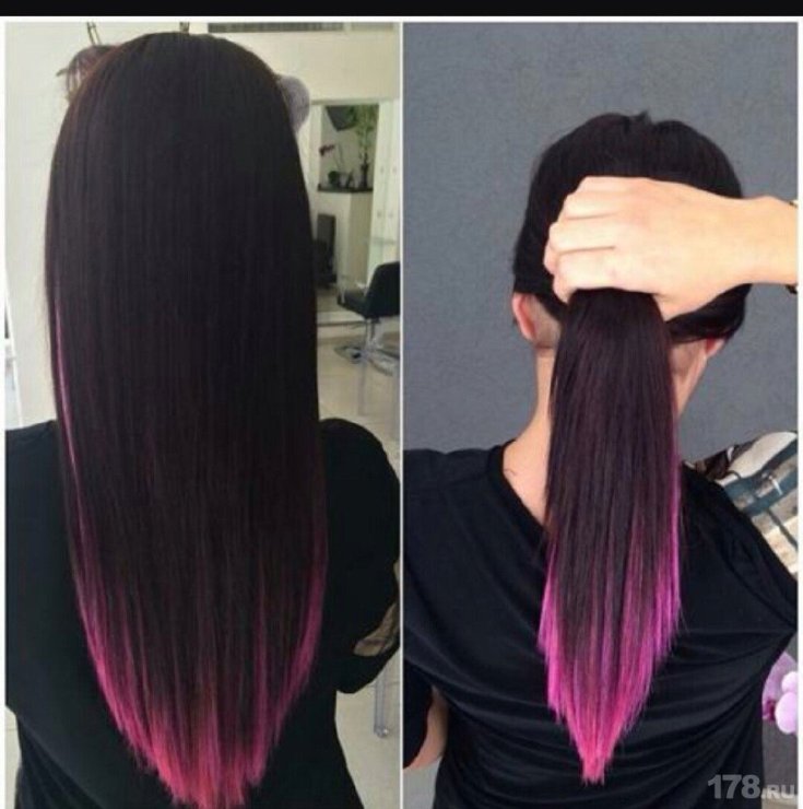 As cores para tingir podem ser semelhantes ou, ao contrário, contrastantes. O principal requisito é que a transição seja horizontal e necessariamente suave. Você pode tingir os fios em qualquer parte da cabeça, fazendo um recuo nas raízes de 0,5-1 cm.