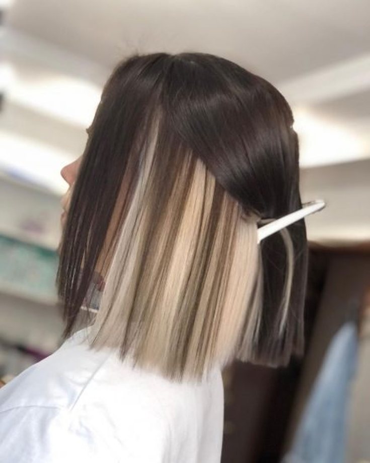 Ao experimentar uma loira escondida, é importante não exagerar. Alguns fios de cores claras serão suficientes. Caso contrário, o contraste será muito evidente e parecerá pouco natural.