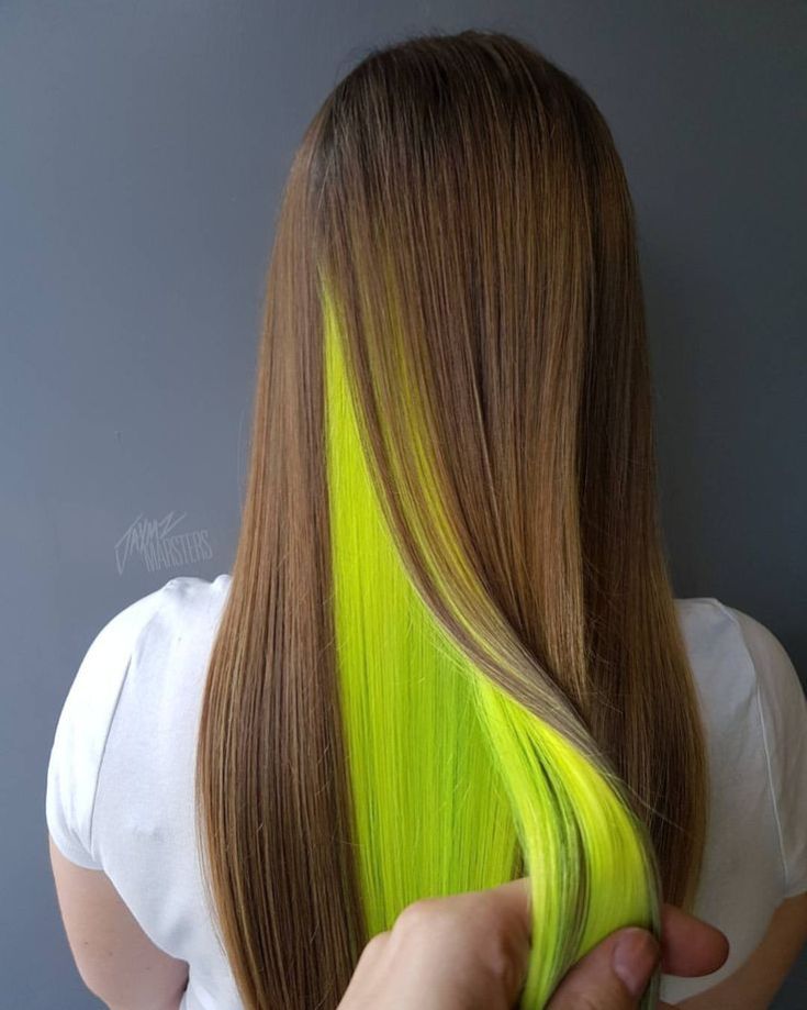 Mais opções se abrem para aqueles que usam cabelos na altura dos ombros ou mais baixos. Nesse caso, você já pode fazer fios inteiros coloridos da raiz às pontas. Você pode revelar seu segredo prendendo seu cabelo em um rabo de cavalo ou coque baixo.