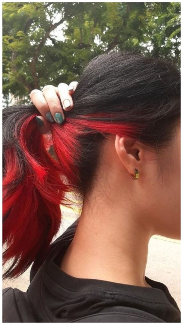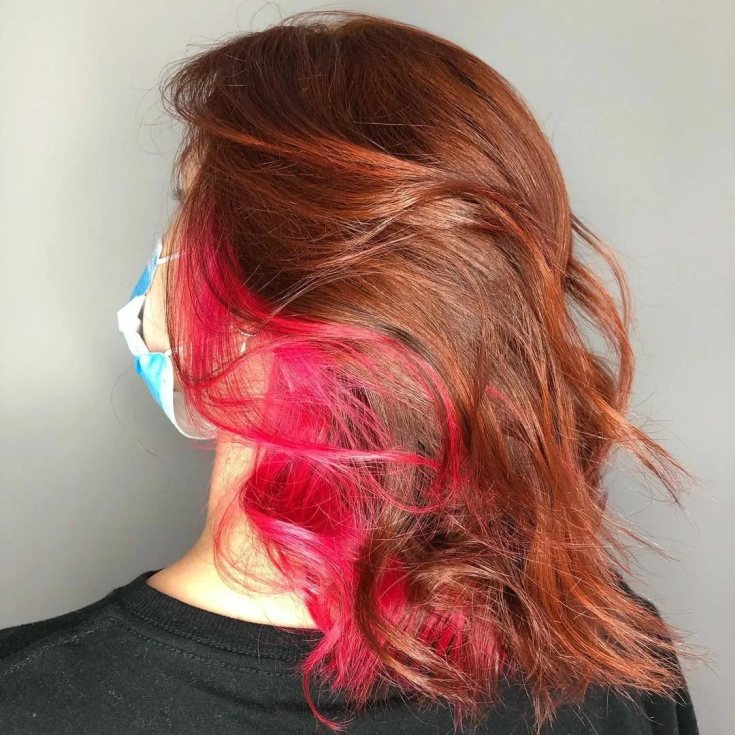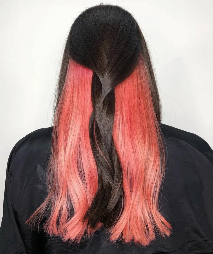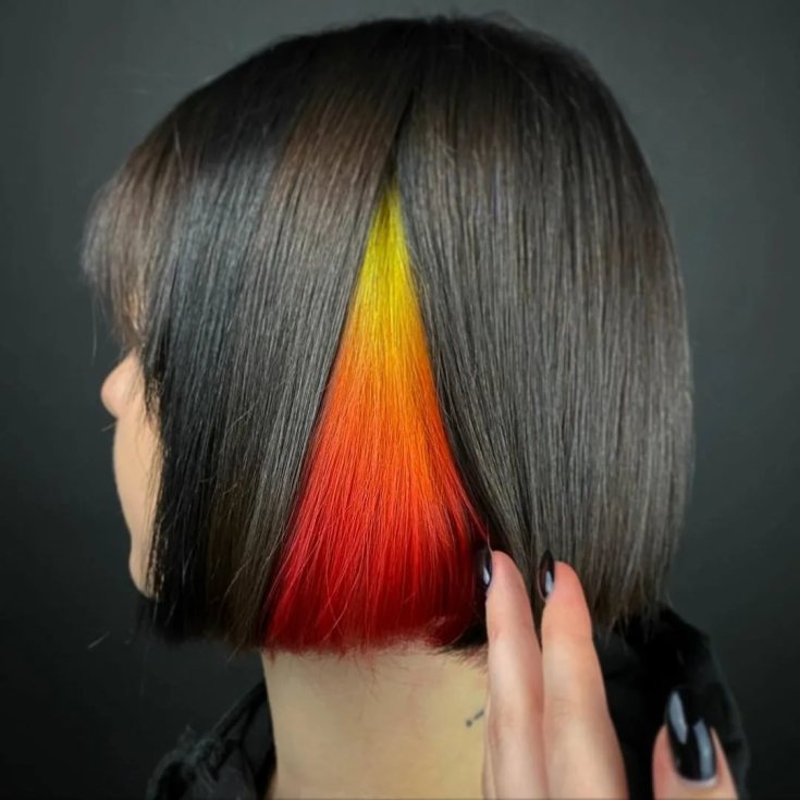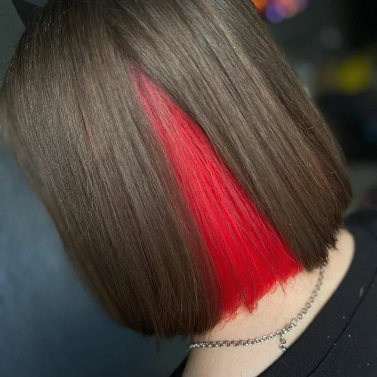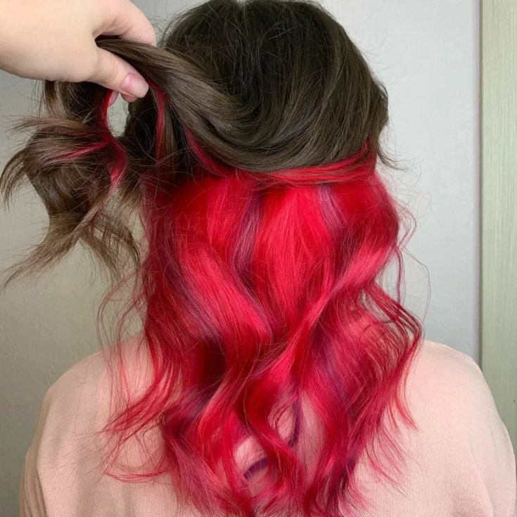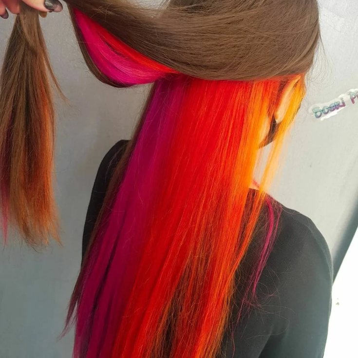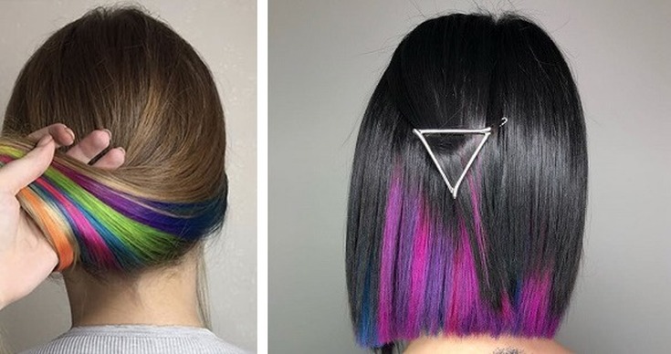 Oculto está a coloração da parte em bloco da cabeça. É produzido por profissionais de salão qualificados. A tinta geralmente é escolhida para ser saturada, contrastante. Via de regra, param em framboesa, verde e âmbar.