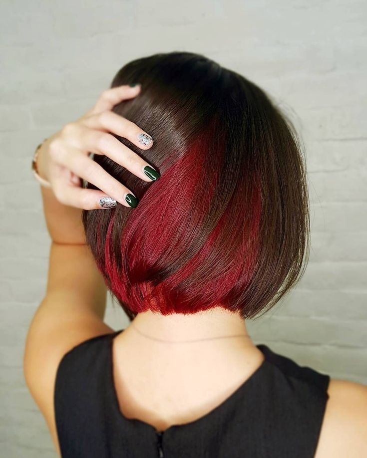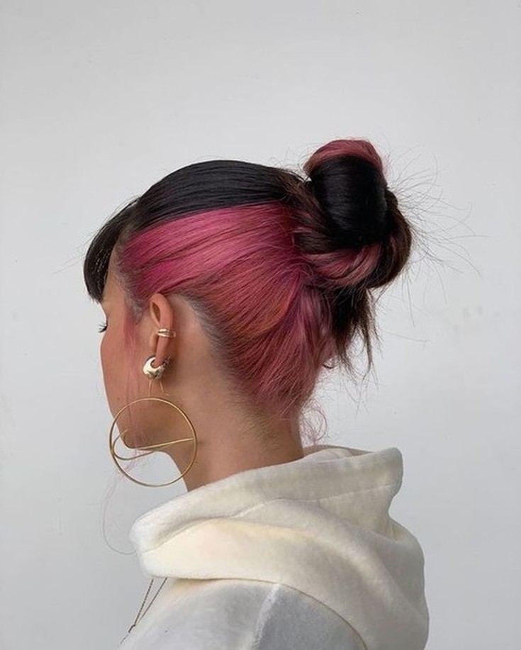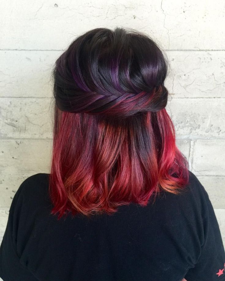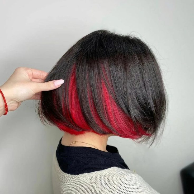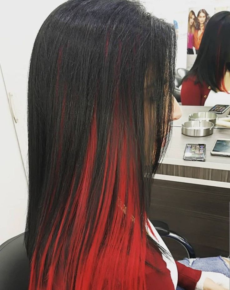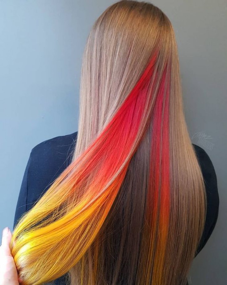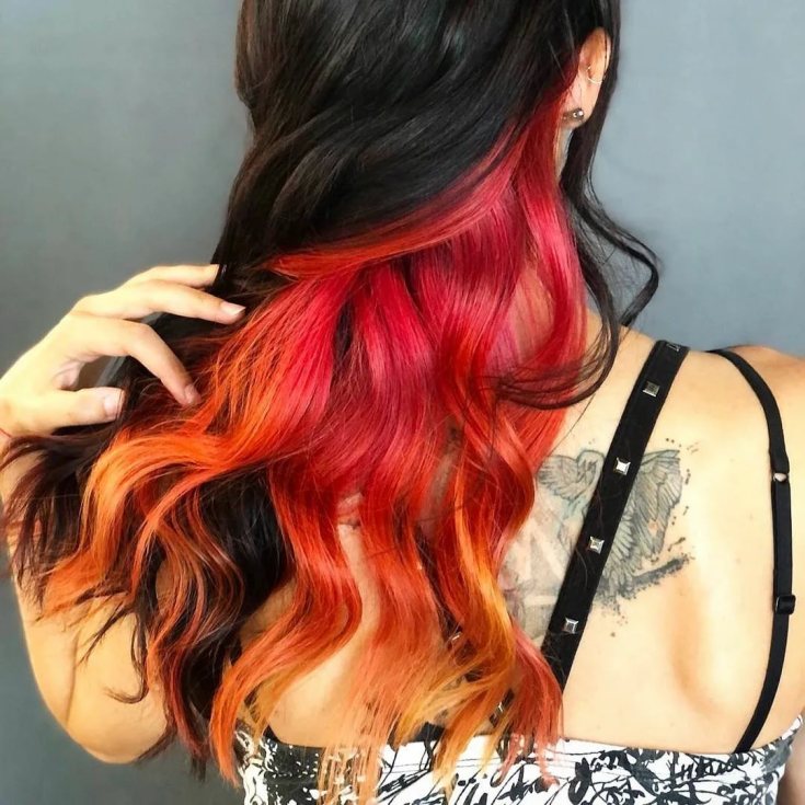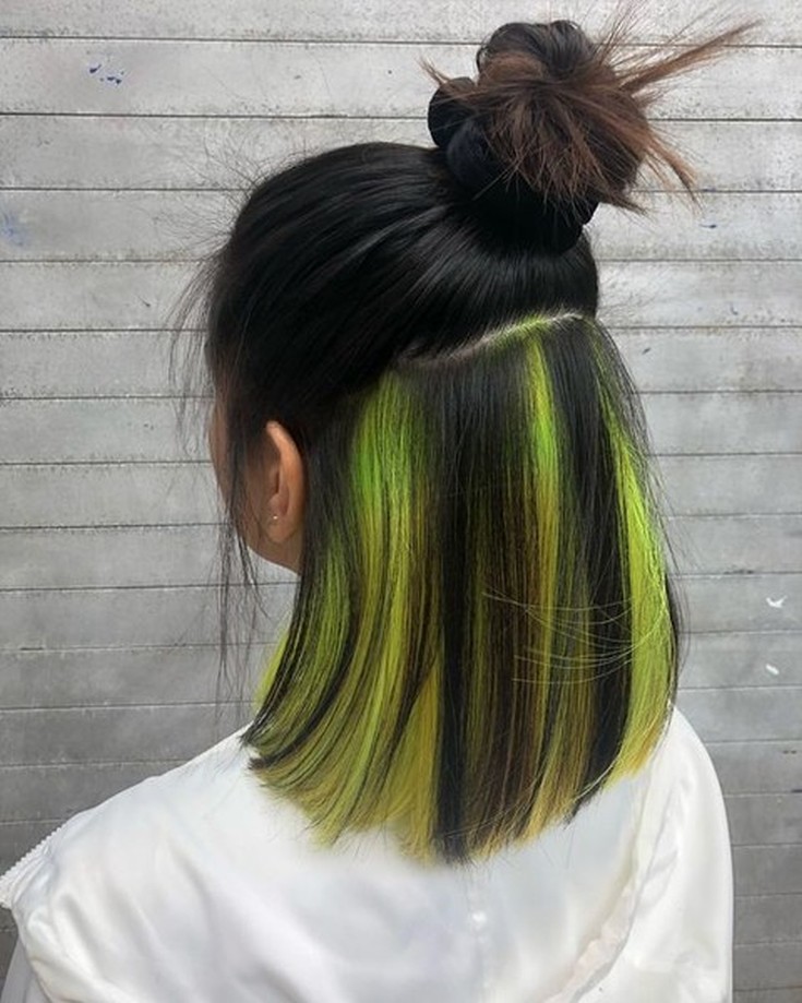 Oculto está a coloração da parte em bloco da cabeça. É produzido por profissionais de salão qualificados. A tinta geralmente é escolhida para ser saturada, contrastante. Via de regra, param em framboesa, verde e âmbar.