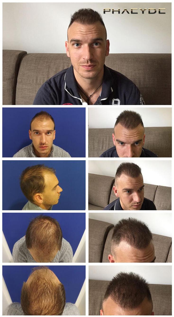 Cinco anos se passaram desde a primeira operação e todos os cabelos transplantados estão no lugar. No momento, o estado é estável, a perda abrandou muito, embora haja necessidade de uma ligeira correção da zona da coroa. Mas, por mim, considero o problema resolvido.