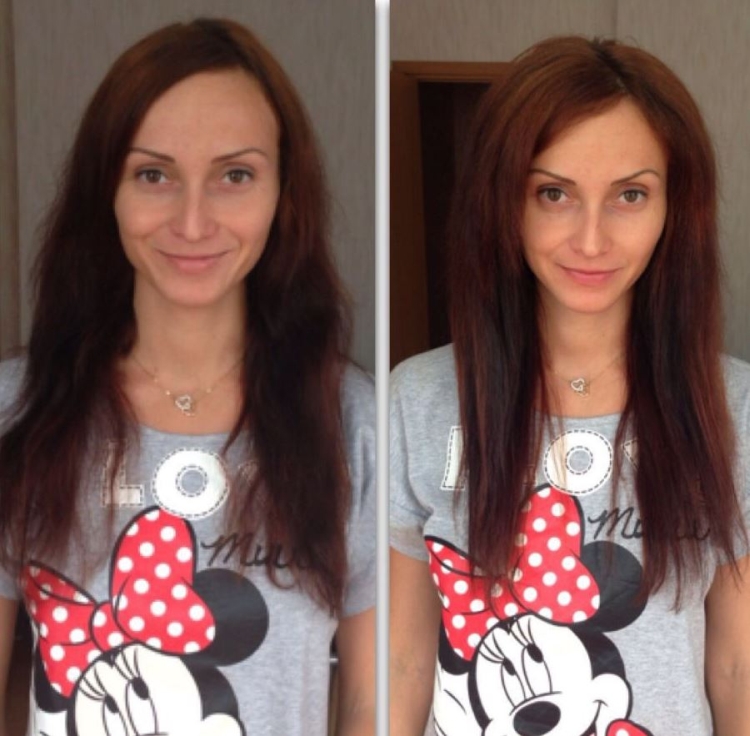 Olhando as fotos do cabelo, o procedimento dá um efeito visível, o volume da raiz muda muito sua aparência, adiciona atratividade.