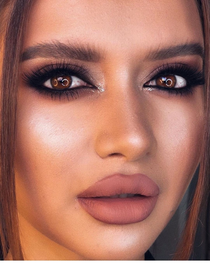 - é importante harmonizar olhos escuros expressivos com a maquiagem correta, a acentuação simultânea da maquiagem dos olhos e lábios é inaceitável;