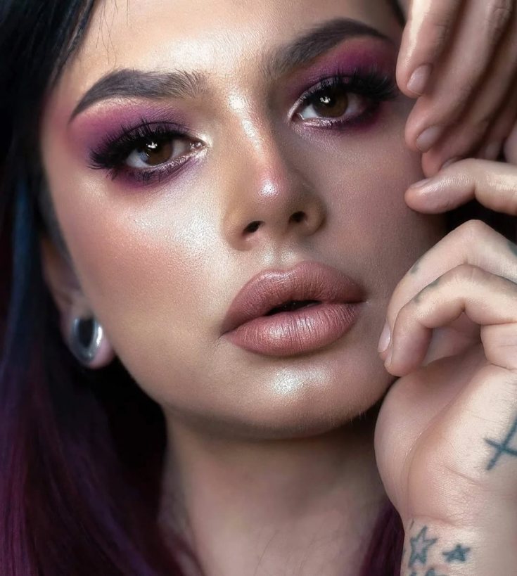 Meninas de olhos escuros com pele escura podem correr o risco de realçar, colorir ou colorir completamente em tom de ameixa ou roxo.
