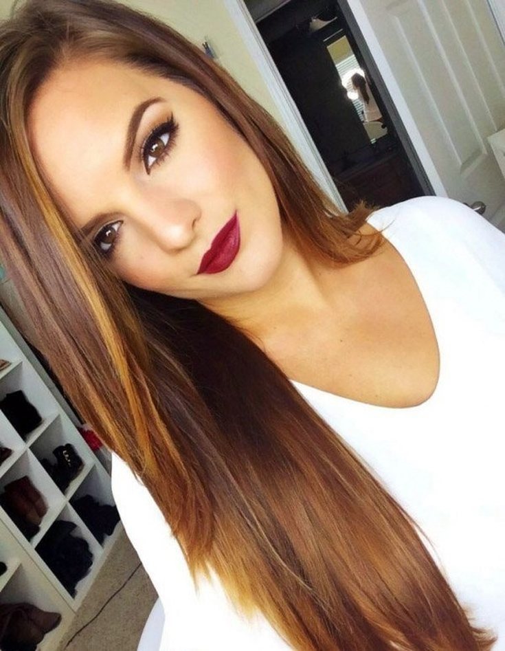 As fashionistas que querem estar na moda devem pintar as pontas dos cabelos de vermelho. Um tom de castanho claro ardente e mogno ficará bem.