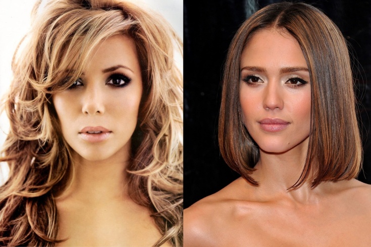Beldades de olhos castanhos com rosto arredondado e cachos escuros serão mais eficazes com um corte de cabelo curto. Com a face alongada, é aconselhável fazer crescer os fios.