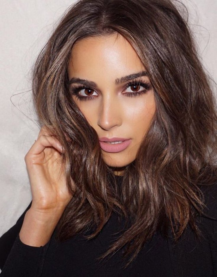 Mulheres de cabelos castanhos podem se dar ao luxo de fazer experiências com seus cabelos, criando fios claros ou escuros. Essa cor de cabelo enfatiza a plenitude dos olhos castanhos. Os fios dourados nas pontas do cabelo realçam favoravelmente os olhos castanhos e realçam a sua beleza.