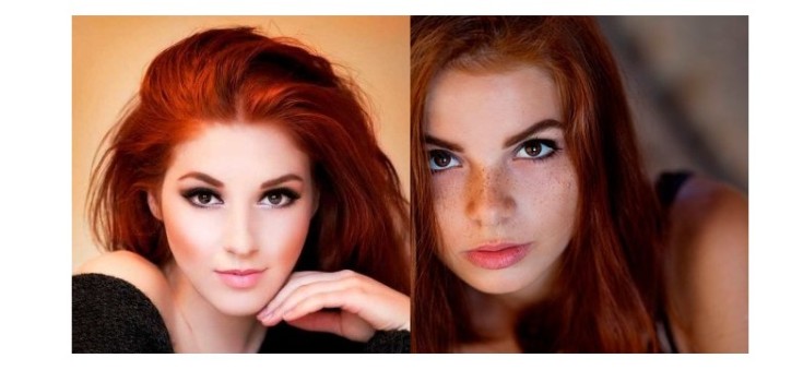 Para proprietários de olhos castanhos, tons ricos de cabelo vermelho são adequados. É importante que a pele esteja impecável. Então ela vai realçar a cor do cabelo brilhante, dando aos olhos castanhos mais saturação. Vale a pena recusar-se a sublinhar as sobrancelhas com um lápis, pois a imagem deve ser o mais natural possível.