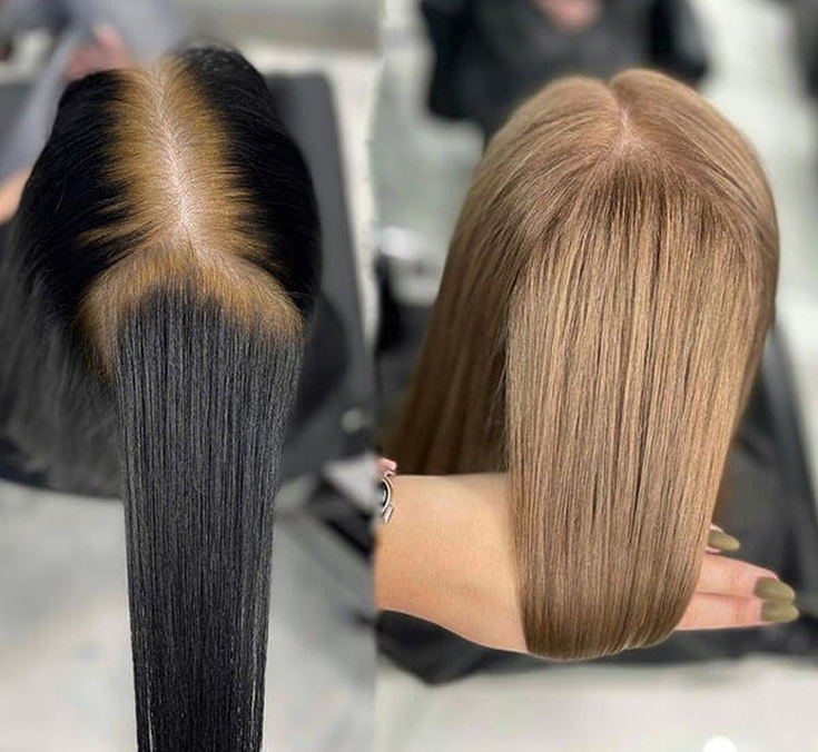 Nos intervalos entre os clareamentos, os cabelos devem ser tratados, preparando-os para a próxima etapa. Para o tingimento final na cor marrom claro, os cabelos descoloridos devem estar isentos de amarelecimento.