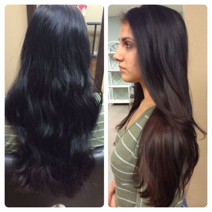 Se o cabelo preto for tingido repetidamente com tintura doméstica das massas do mercado, por exemplo, tinturas populares: Garnier, Palette, Syoss e outros em uma paleta de chocolate castanho, com o tempo, a cor nas pontas e ao longo do comprimento gradualmente muda Preto. Esta situação ocorre devido ao constante acúmulo de pigmento durante a nova coloração, e torna-se mais difícil removê-lo com o tempo.