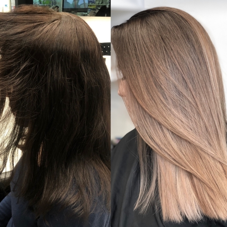 3. O resultado de clareamento é um nível de tom 4-5-6 com um fundo de clareamento avermelhado, nós o tingimos com o tom selecionado para eliminar e neutralizar os ruivos, então deixamos o cabelo sozinho para se recuperar por pelo menos duas semanas ou mais (cerca de um mês e metade). Nesse período, é preciso cuidar cuidadosamente dos cabelos, dando-lhes nutrição e hidratação. Para manter a cor, você pode usar xampus tonificantes e corantes sem amônia.