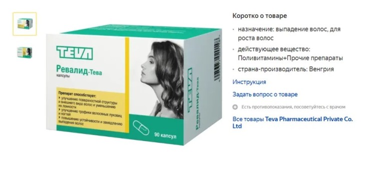 De acordo com as avaliações, a ferramenta ajuda a interromper a queda de cabelo e acelera o crescimento do cabelo. A embalagem contém 90 comprimidos, o que é suficiente para um curso de 1,5 meses.