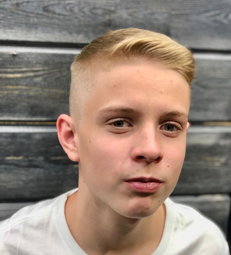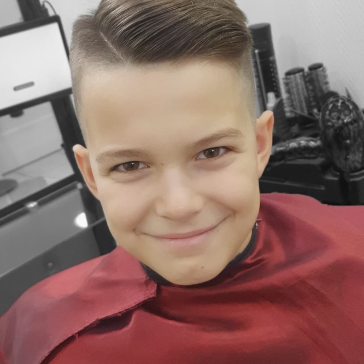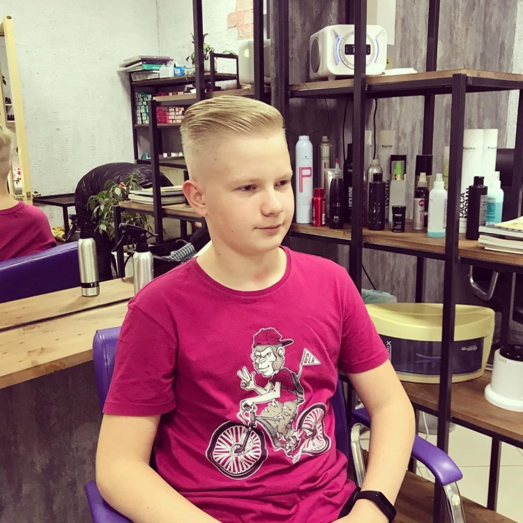 As crianças na adolescência ainda têm o cabelo bastante ralo, por isso um corte de cabelo clássico com uma coroa volumosa e parte parietal e uma nuca encurtada é perfeito para elas.