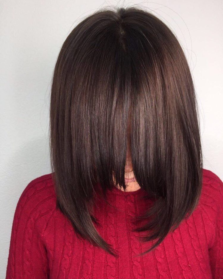 Coloração elegante de um corte de cabelo bob para cabelos escuros: foto