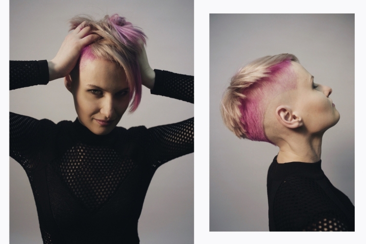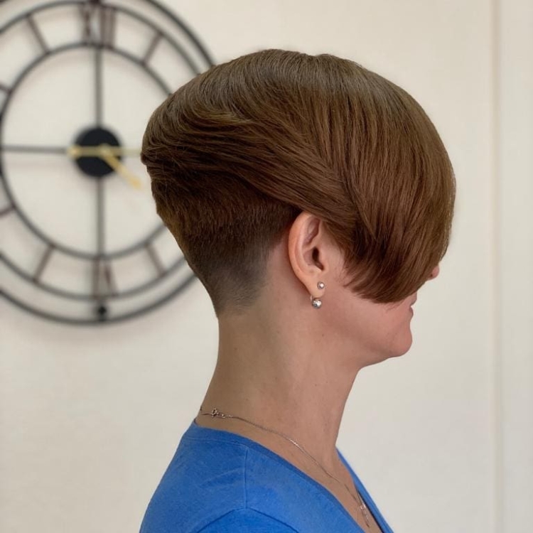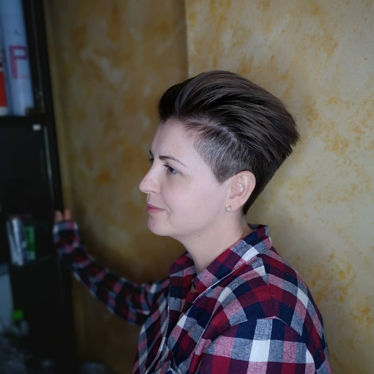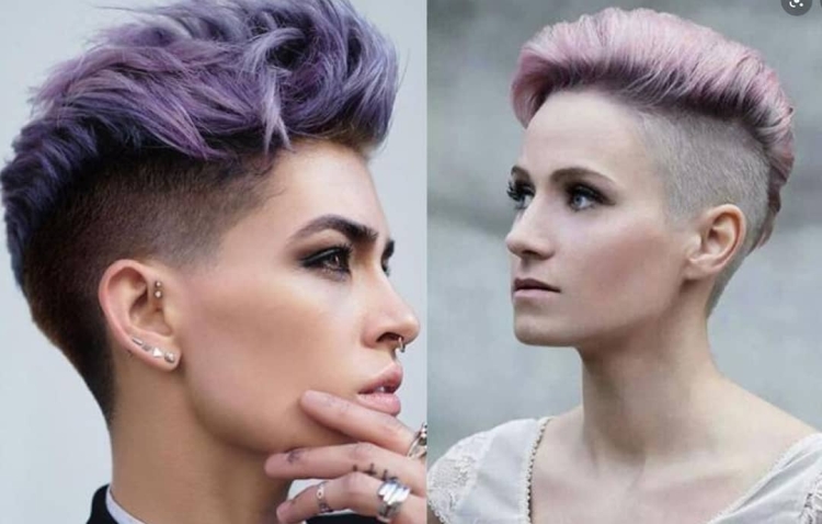 Esta opção é escolhida por jovens senhoras ousadas que gostam de extravagâncias. Você pode raspar as têmporas ou a nuca. Algumas pessoas raspam os desenhos, o que torna sua aparência ainda mais original. Freqüentemente, esses cortes de cabelo são complementados com cores criativas para enfatizar seu visual ousado. Mas você deve levar em conta que a área raspada deve corresponder ao comprimento principal do corte de cabelo.