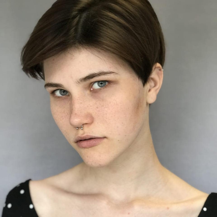 A popularidade dos pixies não perde terreno há várias temporadas. O nome desse corte de cabelo elegante e muito curto é traduzido do inglês como "fada". Uma duende ultracurta com a cabeça raspada e as têmporas se apaixonou por muitas garotas e garotos. Para desenhá-lo, você pode experimentar do fundo do seu coração com o seu mestre: faça comprimentos diferentes, fios multicoloridos, franja multinível, corte de cabelo ou raspe totalmente a metade da cabeça.