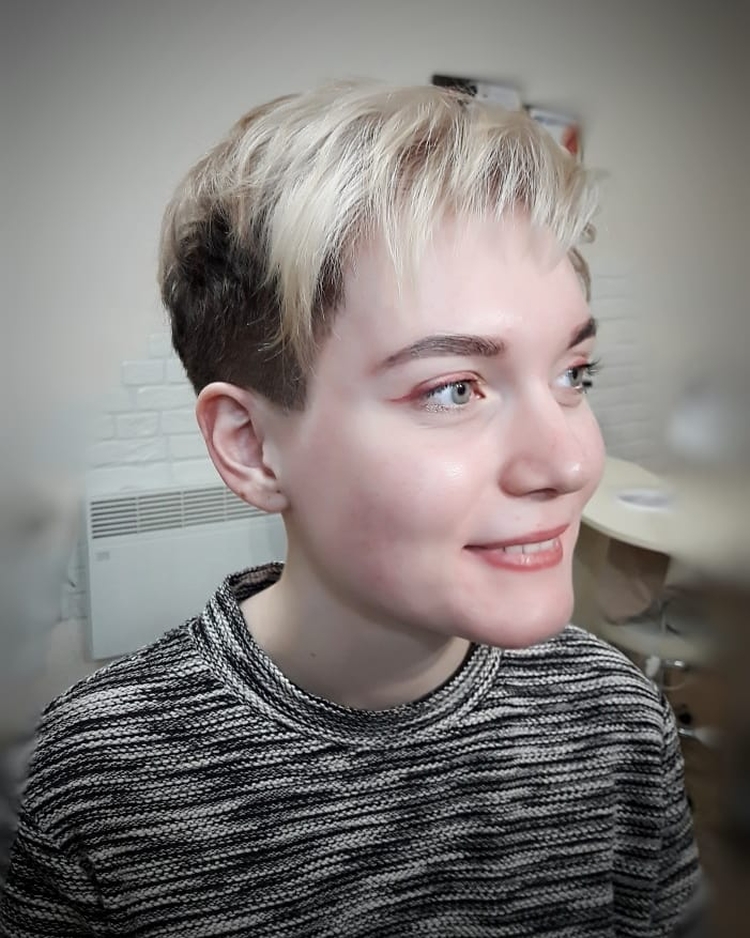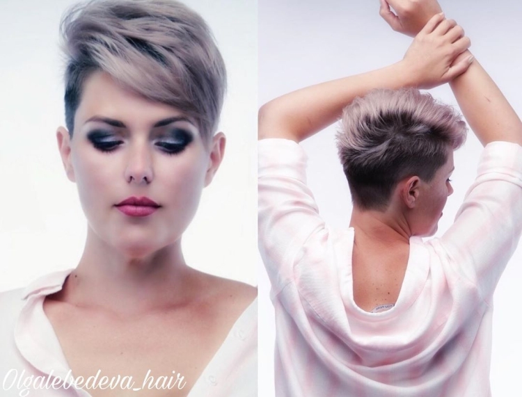 - A capacidade de experimentar é outra virtude de um corte de cabelo curto. Seja criativo e estilize seu cabelo de maneira diferente. Isso permitirá que você não apenas ganhe uma tremenda experiência no domínio das técnicas de estilo, mas também tenha uma nova imagem original todos os dias. Além disso, o cabelo curto permite que você faça experiências com cores;