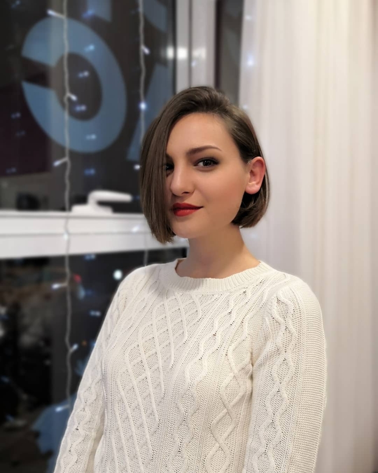 Esse corte de cabelo difere de sua versão clássica na técnica de execução: um bob-square é feito com graduações em todo o comprimento. E a transição deve ser a mais suave possível. O bob square não tem restrições especiais, vai se adequar a qualquer tipo de rosto e cor de cabelo.