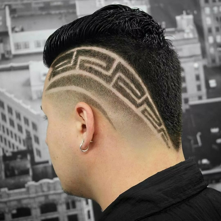 Para quem prefere se destacar e adora um estilo informal, os cabeleireiros aconselham fazer um corte de cabelo com têmporas raspadas e modelagens. Os padrões são raspados com um aparador ou navalha.