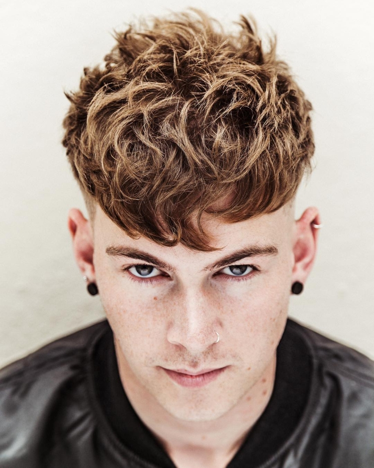 Cachos penteados para trás, assim como um estilo bagunçado e caótico, podem ser uma boa escolha.