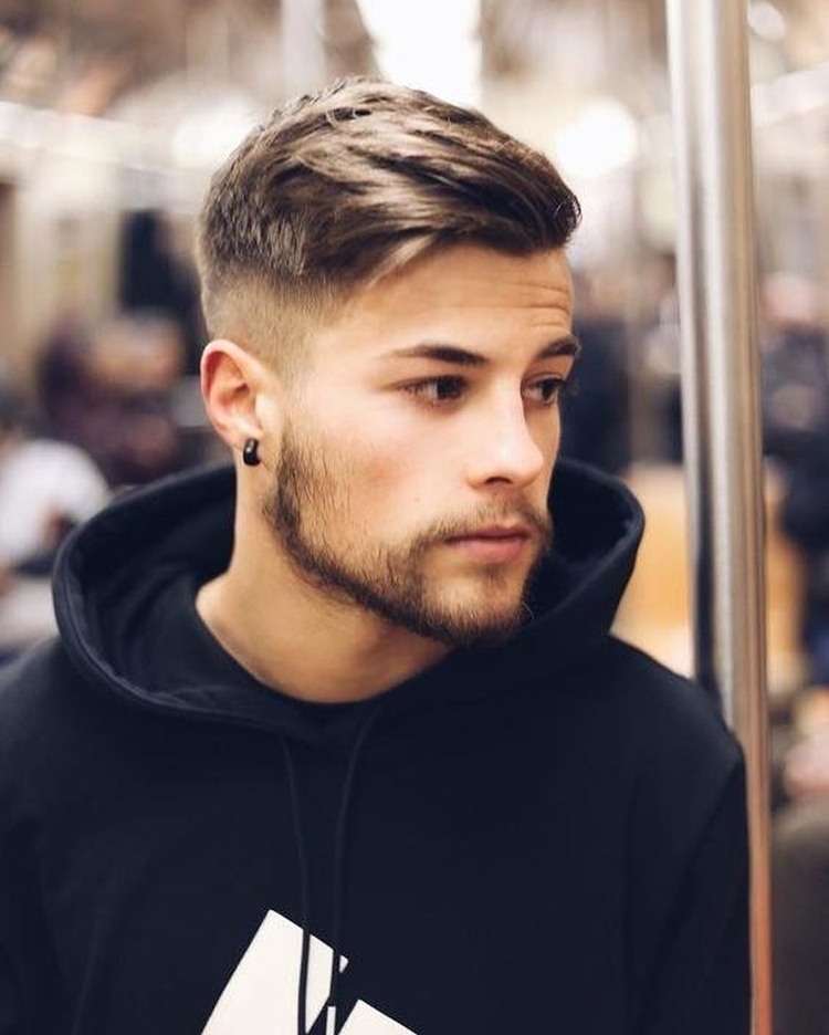 Esta é uma opção conveniente e versátil para o penteado masculino com laterais e nuca raspadas. Adequado para jovens corajosos, abertos e autoconfiantes. Muitas pessoas optam por esse corte de cabelo também por ser de fácil manutenção. Muitas vezes você pode ver crianças em idade escolar e adolescentes que também preferiam esse tipo de corte de cabelo.