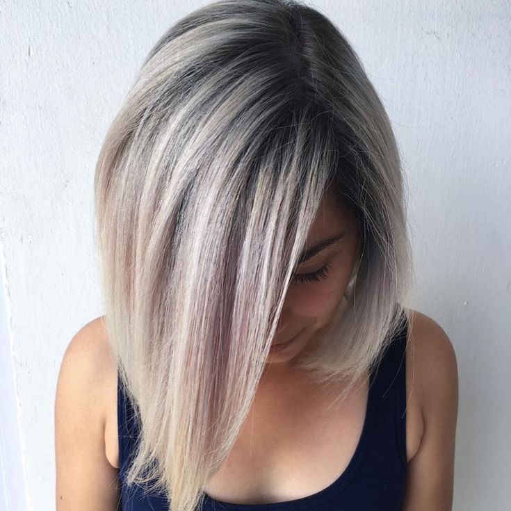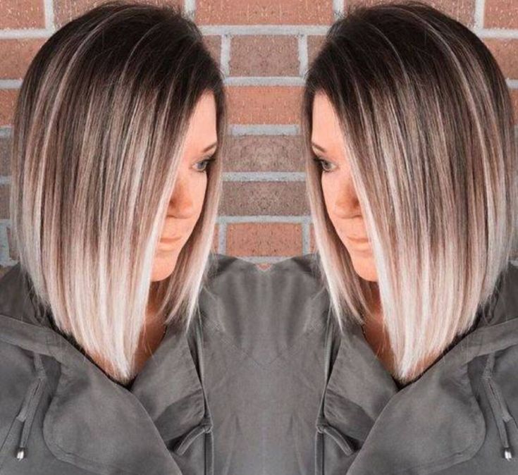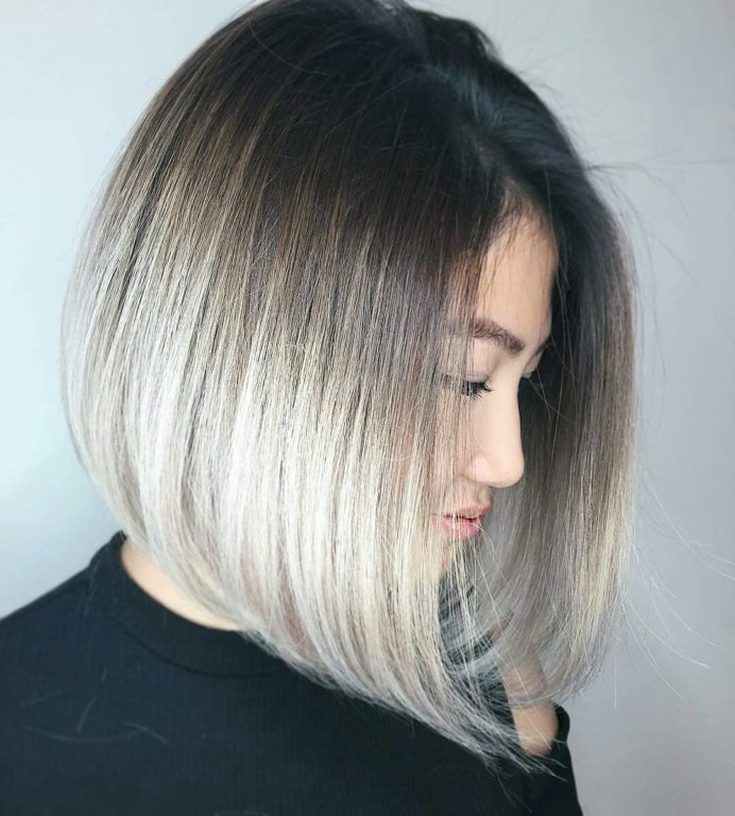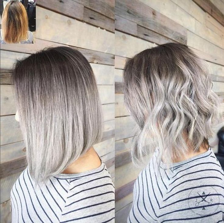 Ombre usando um tom cinza na transição entre as áreas escuras e claras ficará real em cabelos de comprimento médio, logo acima dos ombros.