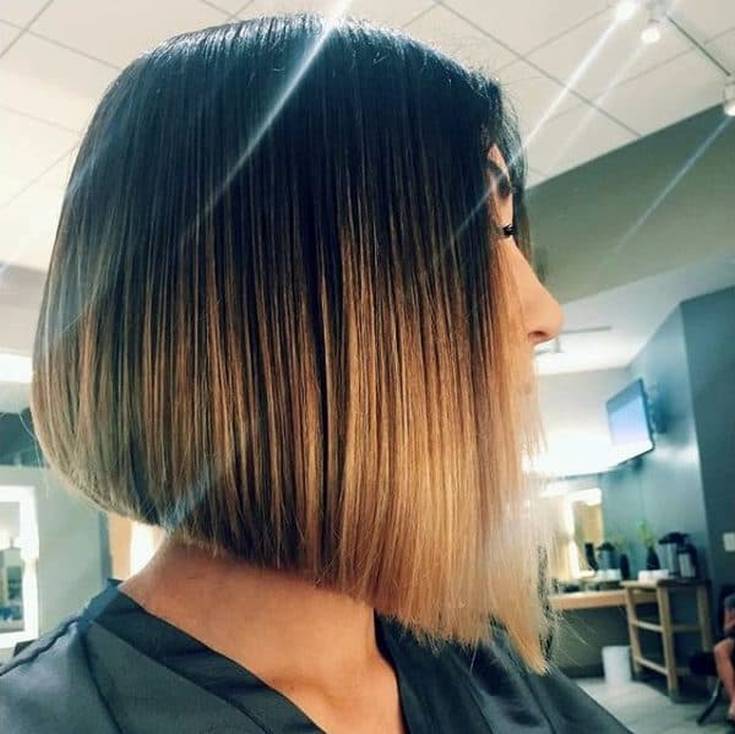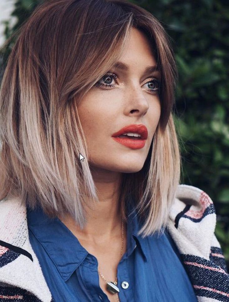 Veja uma foto desse tipo de coloração em um quadrado, inclusive com alongamento, bob e outros cortes de cabelo curtos: