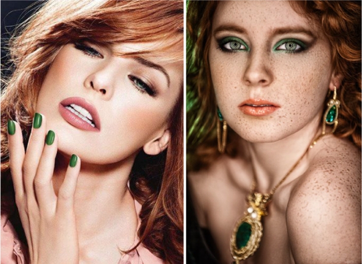 Como eu disse antes, os ruivos têm um tom de pele excepcional. É brilhante o suficiente, embora pareça leve. Ao escolher a sombra para os olhos, deve-se ter em mente que a pele também precisa de uma vizinhança vantajosa.Portanto, se você tem olhos verdes, tons de ameixa e cravo combinam com você. Para olhos castanhos, você deve escolher tons lilás com manchas douradas, champanhe e glitter.