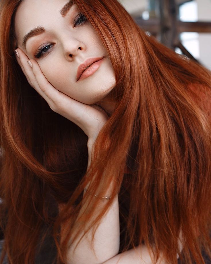Um clássico do gênero que está sempre na moda. A tonalidade cobre torna a mulher ousada e brilhante. Não é recomendado escolher uma cor para meninas com olhos cinzentos, pois essa combinação tornará a imagem sem brilho. Se você quer se destacar na multidão com uma espetacular cor de cabelo cobre, fique à vontade para escolher uma paleta da moda!