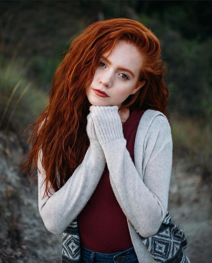 A moda de diferentes tons de cachos nas meninas é muito variável, no entanto, cabelos ruivos e acobreados são sempre populares. Graças a essas tonalidades, você pode tornar a imagem original e brilhante, enfatizar todas as vantagens dos olhos azuis ou verdes.