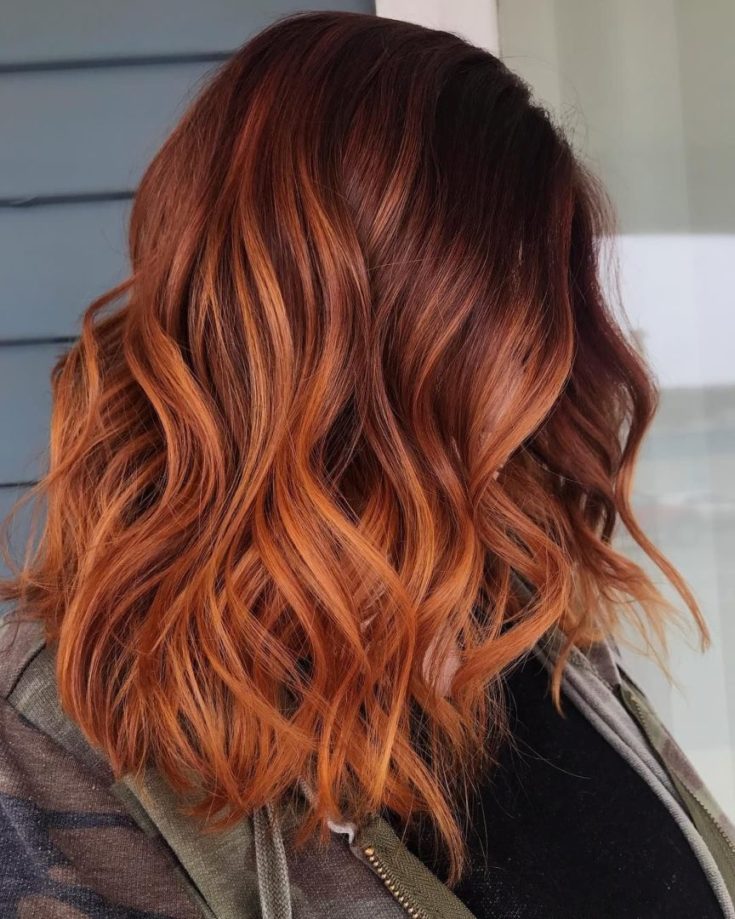 A sombra pertence à paleta universal e ensolarada. Portanto, a cor vermelha clara é perfeita para meninas com diferentes tons de pele. Parece original tanto em cachos lisos quanto cacheados. O comprimento do cabelo também não importa.