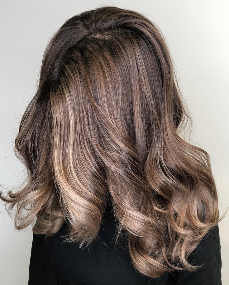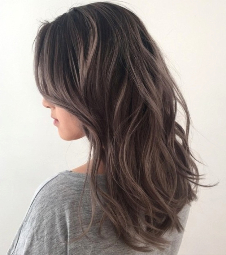 Freqüentemente, os tons de marrom acinzentados agem como um elo de ligação. São usados em técnicas de tingimento como ombre ou balayage e são ótimos para realçar os cabelos escuros. Se seu cabelo é preto e você quer se livrar dele, não há opção melhor do que essa coloração. Suas pontas ou fios selecionados serão clareados para um marrom claro com um tom cinza. A imagem ficará mais fresca, mais clara e mais jovem.