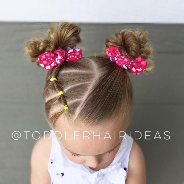 Você pode fazer penteados simples com um coque usando uma rosquinha. Eles são especialmente adequados para bebês com cabelos longos e grossos.