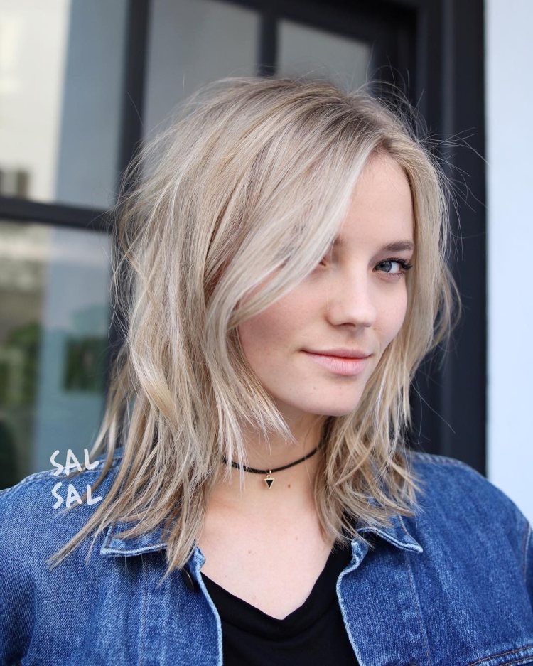 Outro corte de cabelo perfeito para quem tem cabelo fino é um bob longo. O cabelo deve ser significativamente mais longo no rosto do que na parte de trás, e as pontas podem parecer um pouco "rasgadas".