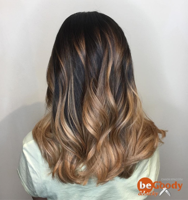 Este método de coloração é uma combinação competente de tons escuros e claros da gama natural: café, mel, âmbar, dourado e outros. É importante que as cores sejam diferentes da cor nativa do cabelo em no máximo 3 tons, caso contrário, em vez de bronzear, pode surgir coloração. A tinta é geralmente aplicada em todo o comprimento dos cachos. Alguns centímetros recuam da zona da raiz.