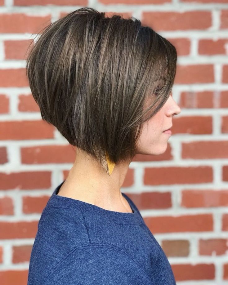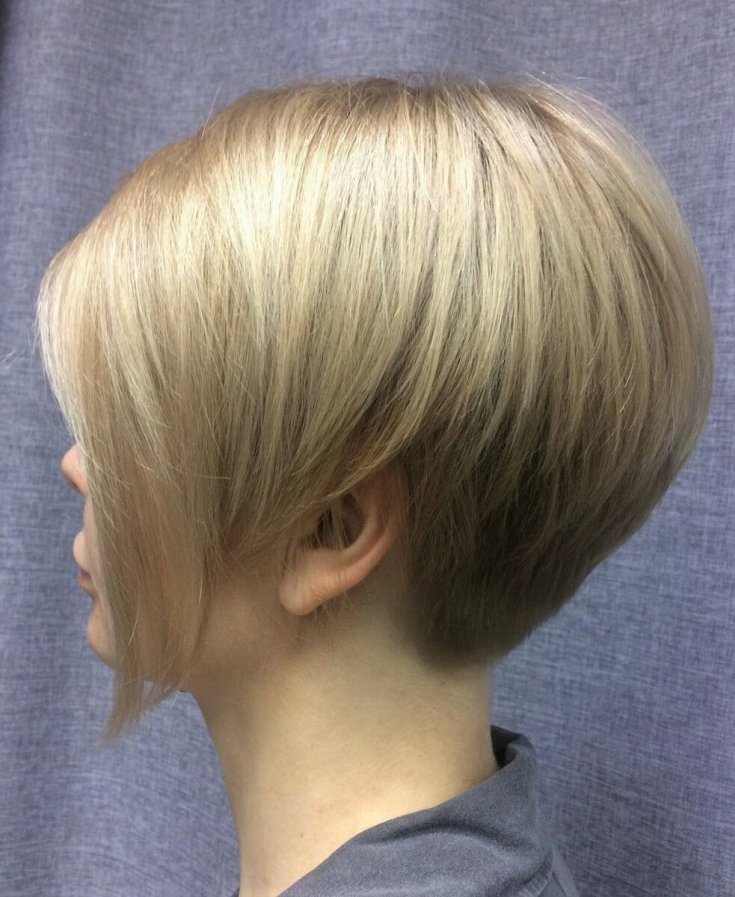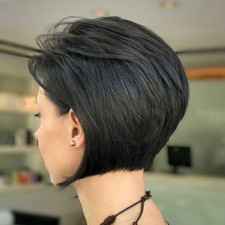 Um corte de cabelo bob para cabelo curto é popular entre as mulheres na casa dos 40 anos. Algumas pessoas acreditam erroneamente que um corte curto para cabelo muito curto não é adequado para mulheres, mas basta olhar a foto para entender o equívoco dessa opinião.
