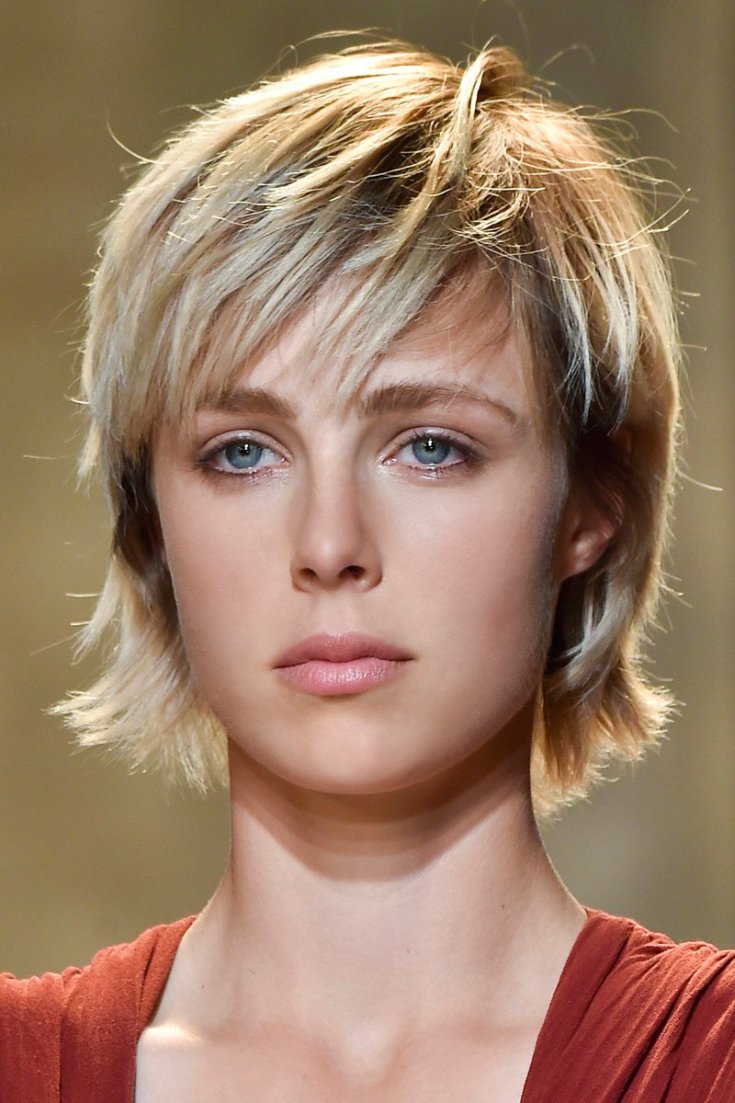 Ideal para moças, pois com este penteado você pode criar uma bagunça deliberada na cabeça, enfatizando a jovialidade e o espírito rebelde da dona. Para demonstrar o arrojo da imagem, a coroa é cortada curta, obtendo o efeito de fios protuberantes. A separação pode ser feita a seu gosto, a franja cortada com uma transição de curta para longa.