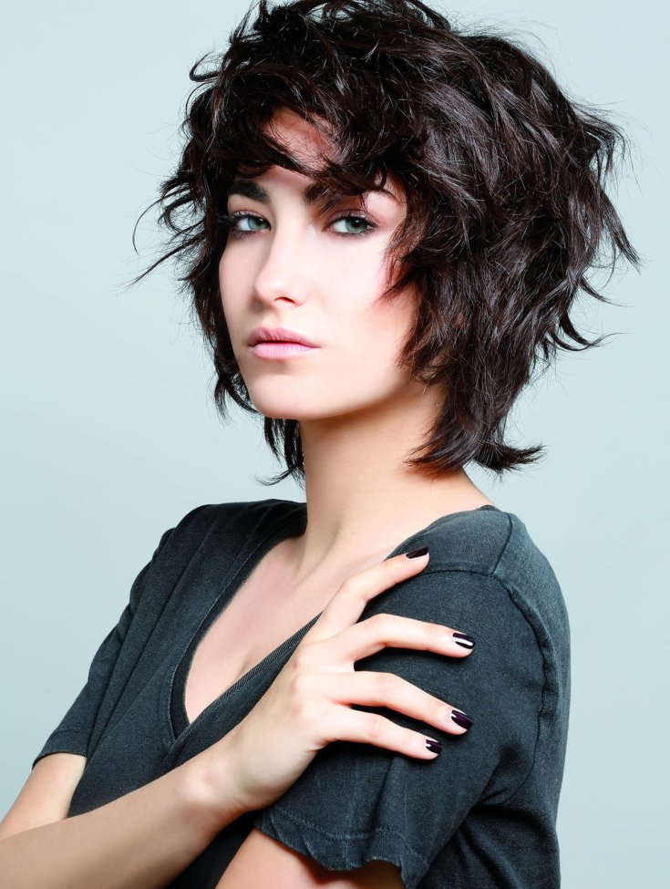 Para enfatizar os lados vantajosos ou esconder as imperfeições do rosto, o estilista-cabeleireiro cria certos acentos no corte de cabelo, "Brincando" com o comprimento e a densidade dos cachos: