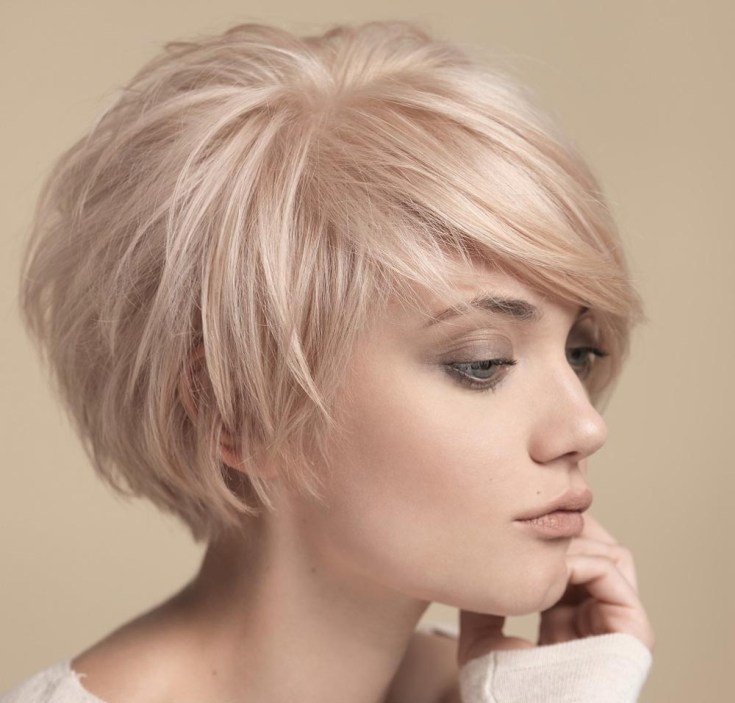 Um penteado com comprimento em camadas permite corrigir imperfeições visuais do rosto. Para cabelos curtos, o tipo de corte de cabelo é selecionado estritamente individualmente. Fios irregulares adicionam volume.