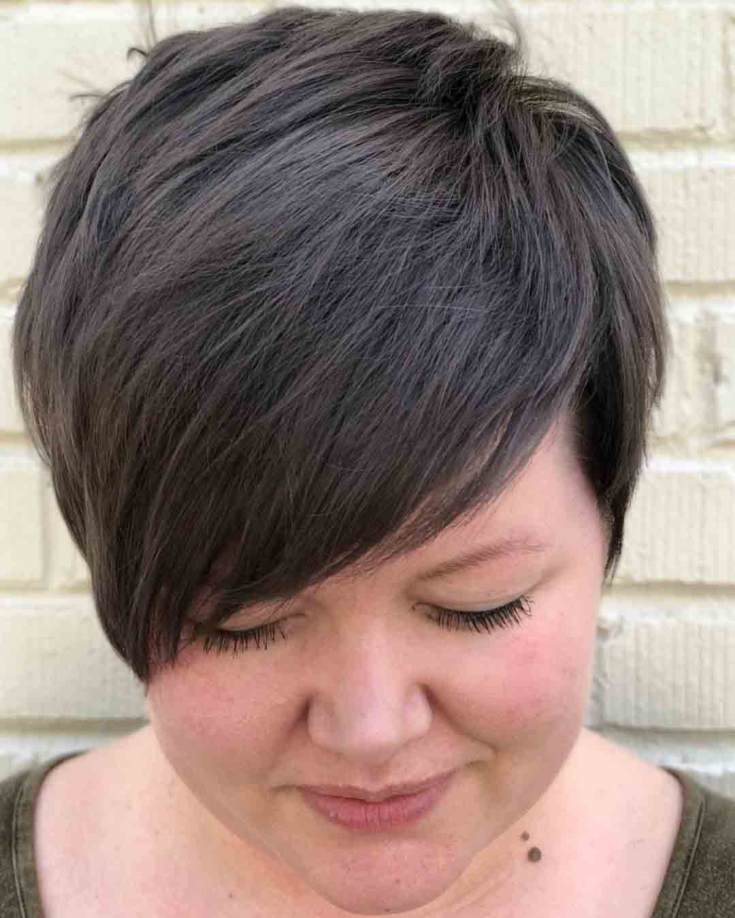 Certamente muitos já ouviram falar de um corte de cabelo como o pixie bob. Sua principal característica é a seleção de uma divisão lateral e o lançamento da maior parte dos fios para o lado. Graças a isso, o oval do rosto se aproxima visualmente do ideal, o que automaticamente deixa a gordinha mais sofisticada.