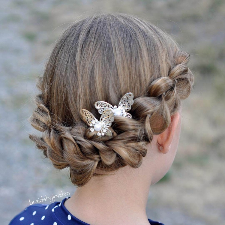 Um coque encaracolado para uma colegial Meninas com cabelo comprido podem fazer uma grande variedade de estilos de cabelo, mas, como regra, tramas e estilos complexos exigem muito